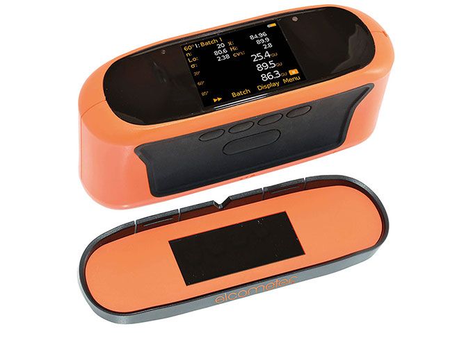 Elcometer 480 kiiltomittari kiillon,  heijastavuuden sekä himmeyden mittauksiin useilta eri materiaaleilta.